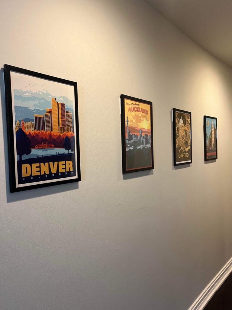 A family member gifted us four prints for Christmas a few years back, and we have only just got round to hanging them up. They’re fun prints of all the places Ky and I have lived together, from Melbourne, Oxford, Auckland, and now Denver. It will be interesting to see if any other cities are added to that list over time, or whether it will just remain the Big4 for now.