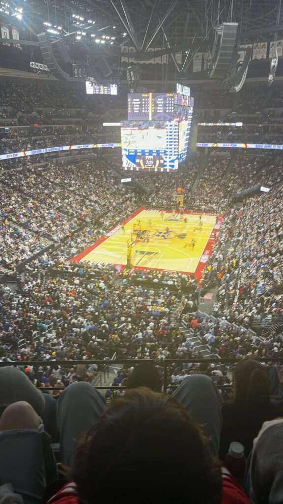 Every time I have been to the basketball prior to this I have sat right up in the gods. On at least one occasion there row behind me was literally a concrete wall. It’s a fun experience, but the game becomes a bit of a sideshow.