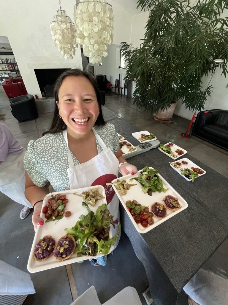 Back at Giles’ house, we started making lunch. The group we were cooking with were all sorts; an American couple from New York, a group of Australian women in their 60s, and a fascinating German man who wrote secret reports on the origins of Covid and had 11 super cars (unfortunately, his phone was out of battery so he couldn’t show me the photos).