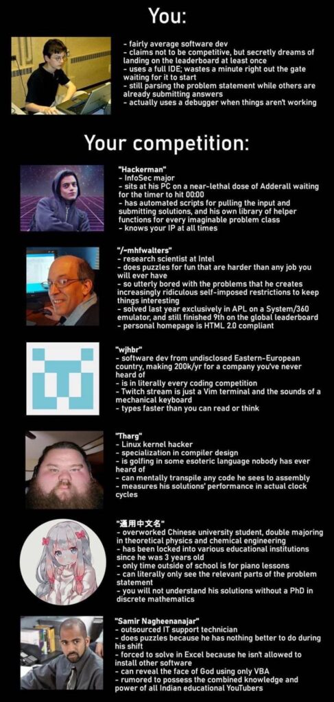 I like it, even though I’m not in the slightest involved in the space of competitive coding. Maybe it’s the archetypes, or the fact that such a niche hobby could attract such intriguing characters which people instantly bond with.