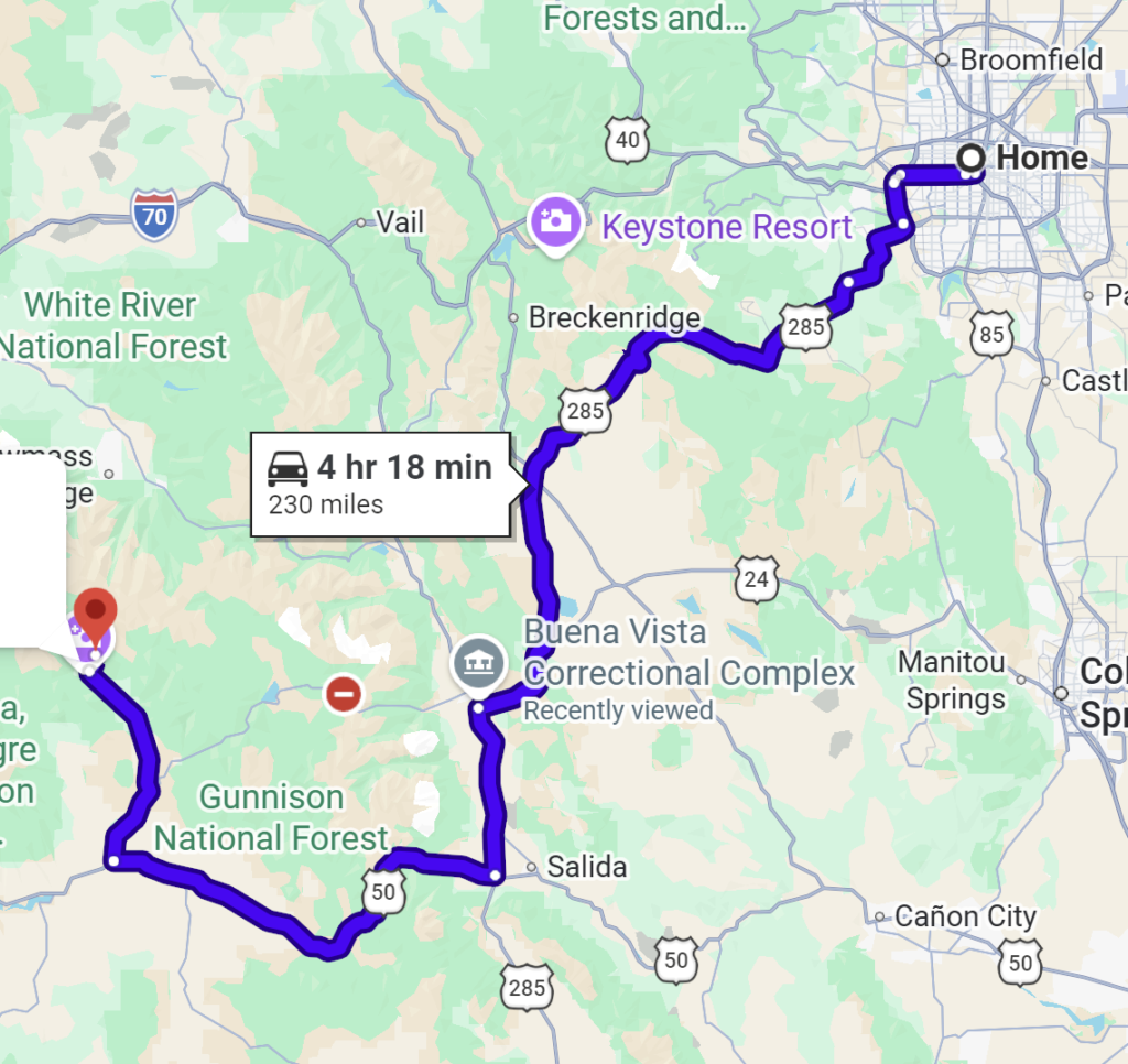 It was a long drive back from Crested Butte, including our break, about 5 hours from door to door on windy roads.