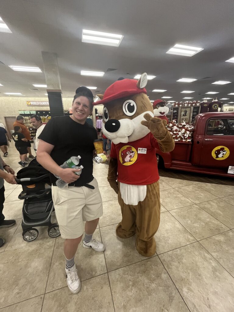 The first thing that you notice is that it is HUGE. And it has to be. I’m not pulling your plonker, there must have been 300 people inside there. Some were buying merchandise (for a gas station, mind you!) some were at thr Brisket Bar where the staff were toiling and singing in such a way that made you think Snow White’s seven dwarves must have had their mine shut down for EPA violations and relocated to Texas for a better life. Some were at the coffee bar, filling their half gallon mugs ($1.99) with industrial quantities of coffee and low fat/no fat/negative fat milk. It was an unbridled Disney World of relentless capitalism, corny and nostalgic to a time that never really existed. Efficiency, variety, and obesity were all exceedingly high and on full display.